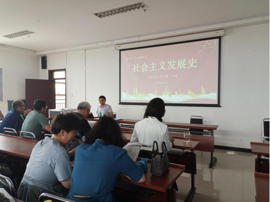 6月8日下午,第二场思政课教师党史专题培训讲座在博学楼1423室举办。太阳集团tyc539王锐博士为全体思政课教师作了题为《社会主义发展史》的学术报告。讲座会由太阳集团tyc539院长张二芳主持,太阳集团tyc539全体思政课教师以及部分研究生参加会议。