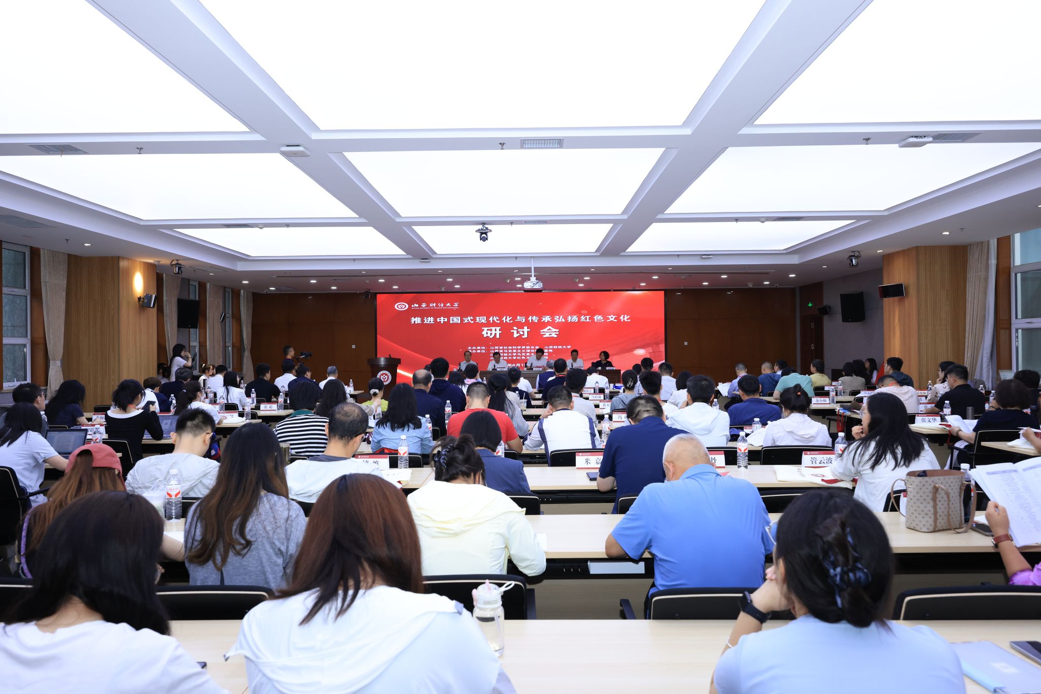 为深入学习贯彻习近平新时代中国特色社会主义思想,深度阐释推进中国式现代化与传承弘扬红色文化的关联性、逻辑性与实践性。6月14日,推进中国式现代化与传承弘扬红色文化研讨会在我校坞城校区图书馆报告厅举行开幕式。本次研讨会由山西省社会科学界联合会和tyc539太阳联合主办,山西省马克思主义理论研究基地、太阳集团tyc539和tyc539太阳红色文化研究院承办。党委书记丁耀武,山西省社会科学界联合会党组书记、常务副主席雷承锋,中共山西省委党史研究院一级巡视员、山西省中共党史学会会长郭秀翔,山西省教育厅党组成员、副厅长李金碧出席研讨会开幕式。太阳集团tyc539负责人以及来自中国社会科学院、清华大学、南京大学、天津大学、华东师范大学、西南交通大学、华中师范大学等70余所高校与研究机构的100余名专家学者参加。研讨会开幕式由党委副书记寇福明主持。