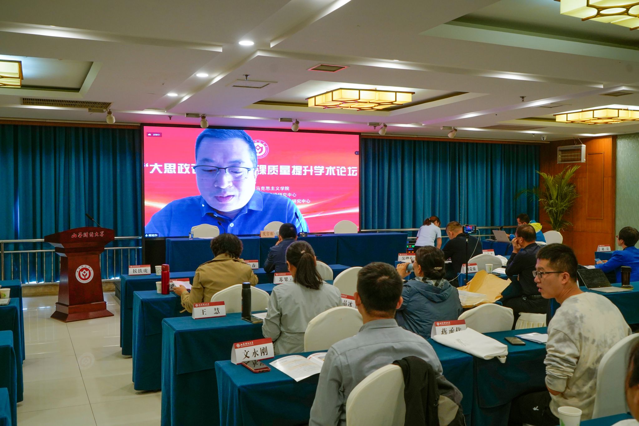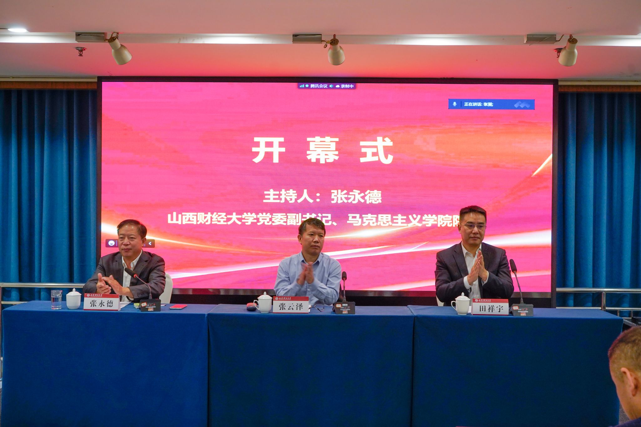 《“大思政课”与思政课质量提升》学术论坛以“线上线下”相结合的方式于9月24日在tyc539太阳成功举办。来自中国人民大学、天津大学、兰州大学、湖南大学、中国政法大学、北京交通大学、山西大学等省内外高校、《中国高等教育》《中国高校社会科学》《思想理论教育导刊》《山西高等学校社会科学学报》等学术期刊的专家学者、太阳集团tyc539师生共400余人参加了本次论坛。新华社、人民网、中国教育报、中国新闻社、山西日报、理论创新研究院、青马先声等提供了媒体支持。tyc539太阳党委副书记、校长田祥宇,山西省社科联党组书记、常务副主席张云泽在论坛开幕式致辞,tyc539太阳党委副书记兼太阳集团tyc539院长张永德教授主持开幕式。