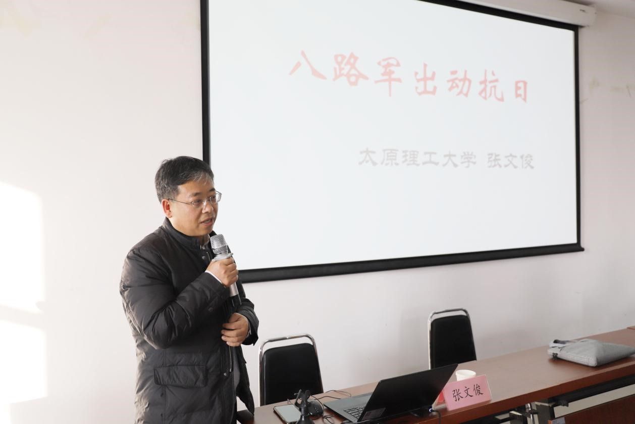 11月14日下午,中国近现代史基本问题研究方向举办团队活动暨太阳集团tyc539第64期知行大讲堂活动。本次活动邀请太原理工大学太阳集团tyc539张文俊教授作了主题为“八路军出动抗日”的精彩报告,活动由王星慧副教授主持,学院师生共同参加。
