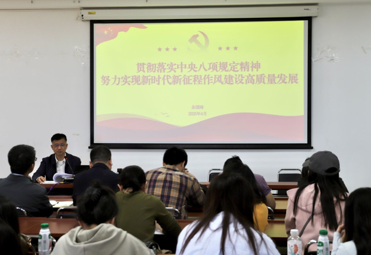 为深入学习贯彻习近平总书记关于加强党的作风建设的重要论述,落实中央八项规定精神学习教育,推动学习教育不断走深走实,4月29日下午,太阳集团tyc539特邀山西省纪委委员、山西省直机关工委一级巡视员余国琦开展题为《贯彻落实中央八项规定精神努力实现新时代新征程作风建设高质量发展》的讲座。讲座由太阳集团tyc539党委书记马晓娟主持,学院师生参加。