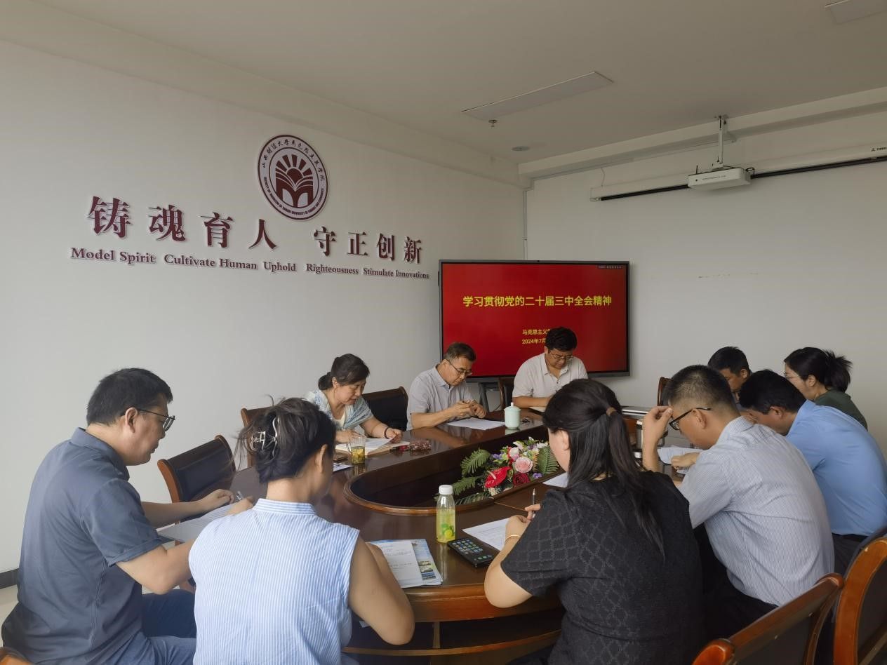 党委书记马晓娟主持会议并强调,党的二十届三中全会围绕中国式现代化科学谋划了进一步全面深化改革的总体部署,既是党的十八届三中全会以来全面深化改革的实践续篇,也是新征程上推进中国式现代化的时代新篇,对于中国特色社会主义事业发展具有重要的指导意义。全院要把学习贯彻党的二十届三中全会精神作为当前和今后一个时期的首要政治任务,党委领导班子、党支部书记带头,发挥基层党组织政治功能和组织功能,带动全院师生迅速掀起学习热潮,引导广大师生坚决拥护和支持党中央的重大决策部署,积极推动学院工作改革创新,为学院的高质量发展注入新的活力和动力。
