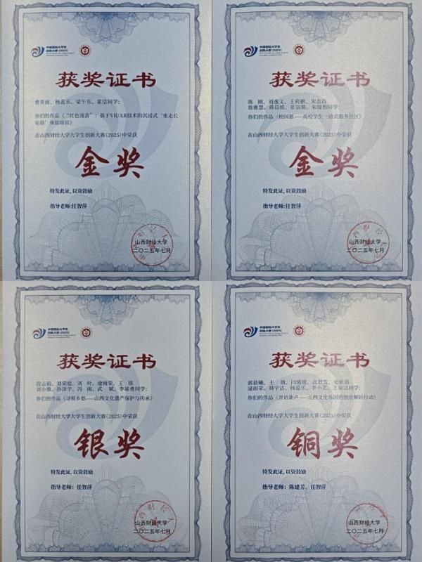 在我院获奖作品中,各项目紧紧围绕科技前沿、校园服务优化、文化传承与创新发展等领域,展开积极探索。金奖作品高教主赛道研究生创意组《“红色漫游”:基于VR/AR技术的沉浸式‘重走长征路’体验项目》通过全景交互叙事与虚实融合技术,生动再现重大历史场景,有力探索了红色教育资源数字化转型的创新路径;《校园惠——高校学生一站式服务社区》立足校园生活,整合校内学习、生活、社交、就业等学生需求,搭建起高效、便捷的线上学生共享平台。银奖作品高教主赛道研究生创意组《寻根乡愁——山西文化遗产保护与传承》聚焦山西传统技艺与民俗文化,借助文创设计,力求实现传承文脉、留住乡愁、彰显特色;铜奖作品《晋语新声——山西文化基因的创意解码行动》则依托我院青年马克思主义宣讲团,深入乡村、社区、学校,将山西文化研究成果转化为一系列生动的宣讲活动,推动宣讲更接地气、理论更入人心。这些项目不仅体现了我院学生扎实的专业功底和跨学科实践能力,更展现了他们立足社会需要、服务社会进步的责任担当。