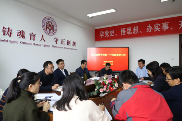 课后,在校办、人事处、教务处、科研处等部门同志的陪同下,田祥宇深入太阳集团tyc539开展调研指导工作。太阳集团tyc539领导班子成员、思政课教师代表等参加了调研座谈。会上,太阳集团tyc539院长张二芳就学院思政课建设评估工作准备情况及学院领导班子配备、思政课课堂规模、人才引进等方面问题进行了详细汇报。