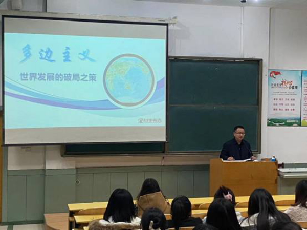 11月25日,党委常委、纪委书记、监察专员卢平走进知行楼101阶教,以“多边主义:世界发展的破局之策”为题,为2020级旅游管理、文化产业管理专业学生讲授形势与政策课。