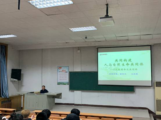 11月29日,党委常委、副校长王志强以“共同构建人与自然生命共同体之校园命运共同体”为主题,在修德楼201阶教为2021级体育经济与管理、人力资源管理专业的同学们讲授思政课。