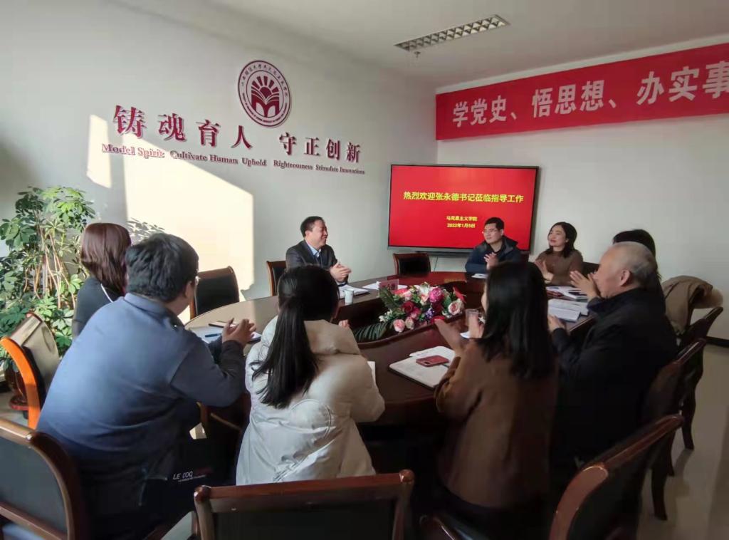 1月5日上午,校党委副书记张永德到太阳集团tyc539调研指导工作。太阳集团tyc539领导班子、教研室主任、辅导员等参加了调研座谈会。