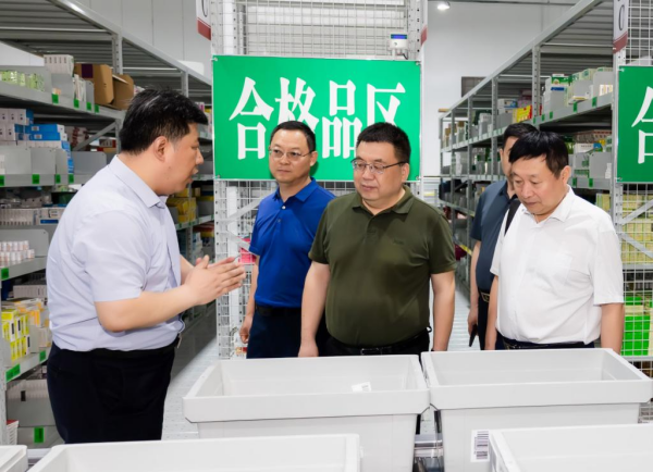 在山西顺天立大健康产业集团董事长胡瑾瑜先生的引导下,米子川副校长一行首先参观了位于潇河工业园区的山西万美医药科技有限公司物流仓储基地。该公司专业从事药品、医疗器械、化妆品、保健食品、预包装食品等大健康产品的储存及货物专用运输的综合型医药流通。在万美医药公司的物流仓储里,胡瑾瑜先生详细介绍了整个医药供应链运营流程、冷链设备以及现代化仓储管理流程。